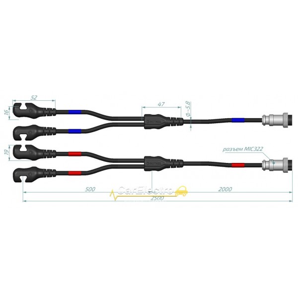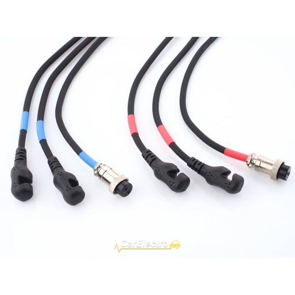 Датчики имеют цветовую маркировку, так как методика диагностики предполагает определение полярности высоковольтных проводов и подключение к ним соответствующих датчиков: красного или синего.