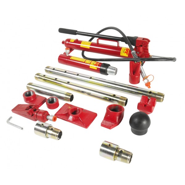 - Набор гидравлического инструмента представляет собой компактный и удобный в эксплуатации комплект из гидравлического насоса (1) и гидравлического цилиндра (3), с помощью которых создается рабочее усилие; удлинителей для упрощения работы (5-8); специальных фигурных соединяющих насадок (11-16), для надежного упора в детали кузова.