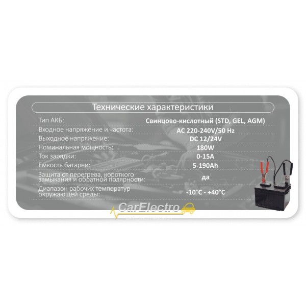 Импульсное зарядное для АКБ 12В/24В 15А