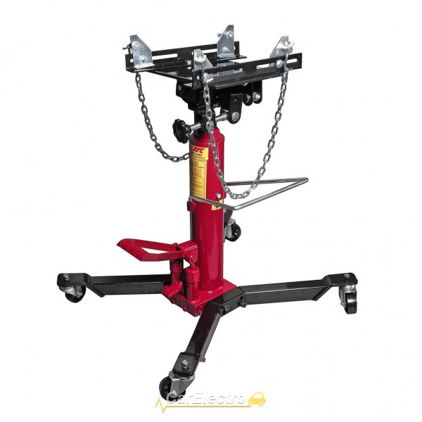 - Подъем осуществляется при помощи гидравлического насоса, который приводится в действие педалью, что позволяет оператору полностью контролировать процесс монтажа/демонтажа элементов трансмиссии.