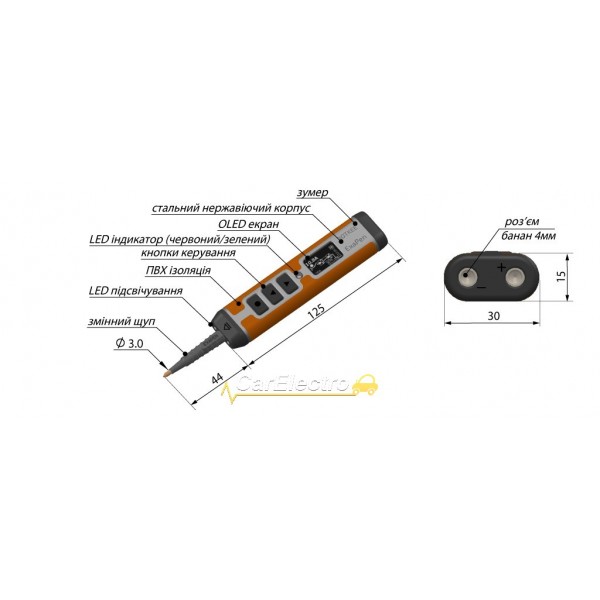 ExaPen is a new multi-functional automotive circuit tester for diagnostics of electrical components of the automotive electrical network. Despite its compact size, it combines several powerful types of tests, allowing the user to perform checks of many vehicle components with a single device. The extremely easy-to-use and reliable tester is covered by a shock-resistant metal case. It works with 12–24 Volt ranges, which allows to diagnose not only cars and motorcycles, but also trucks.