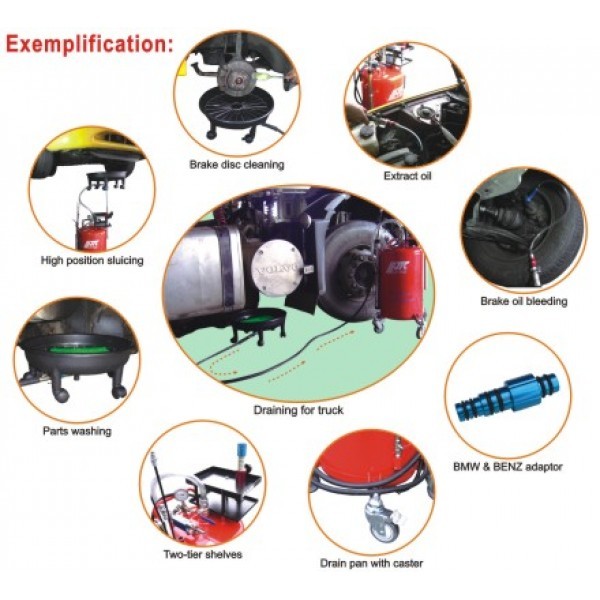 - Применяется для откачки технических жидкостей (моторное масло, тормозная жидкость и т.д.) с помощью сжатого воздуха. Подходит ко всем легковым и грузовым маркам автомобилей.