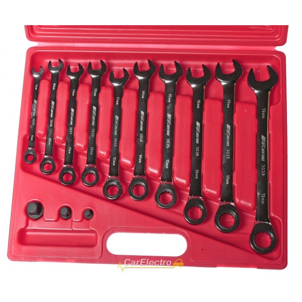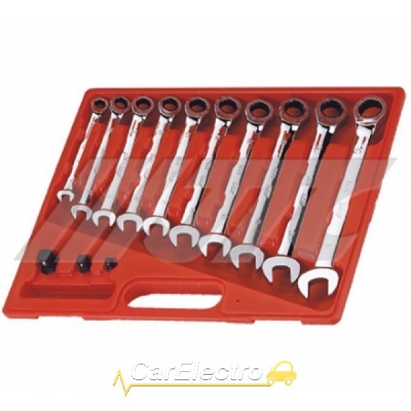 Набор ключей рожково-накидных с трещоткой 8-19мм 10ед