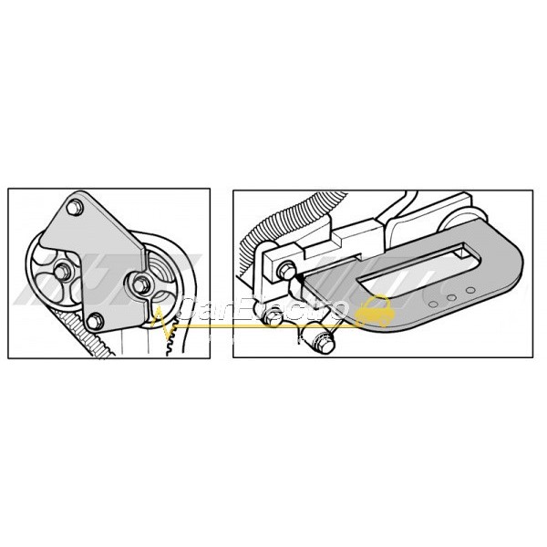 Приспособление для регулировки шкива распределительного вала предназначено для фиксации шкивов во время замены приводного ремня и последующей корректной установки фаз ГРМ.