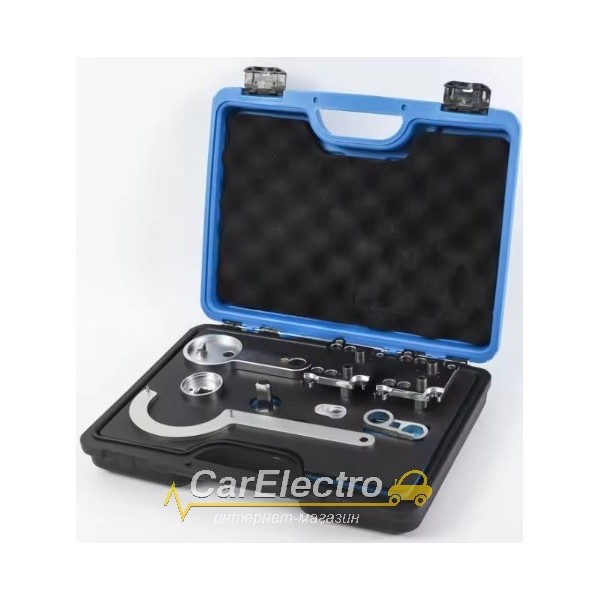 Набір містить усі важливі інструменти для правильного базового налаштування регуляторів фаз, розподільних валів, ланцюга ГРМ та колінчастого валу.