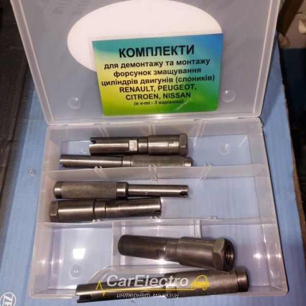 Комплект інструментів для зняття та встановлення форсунок мастила циліндрів дизельних двигунів автомобілів Renault, Peugeot, Citroen, Nissan.
